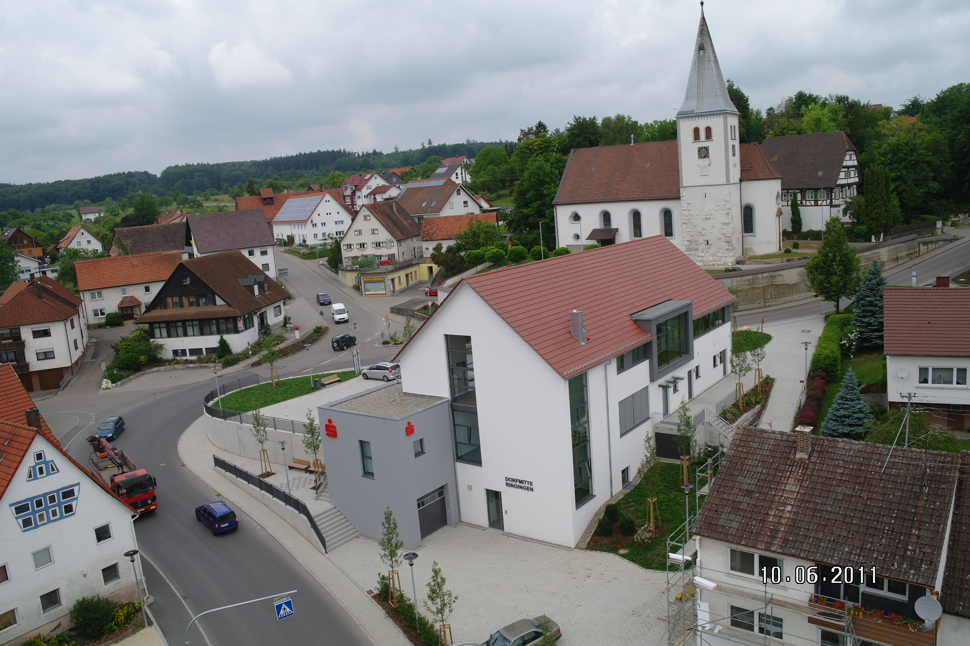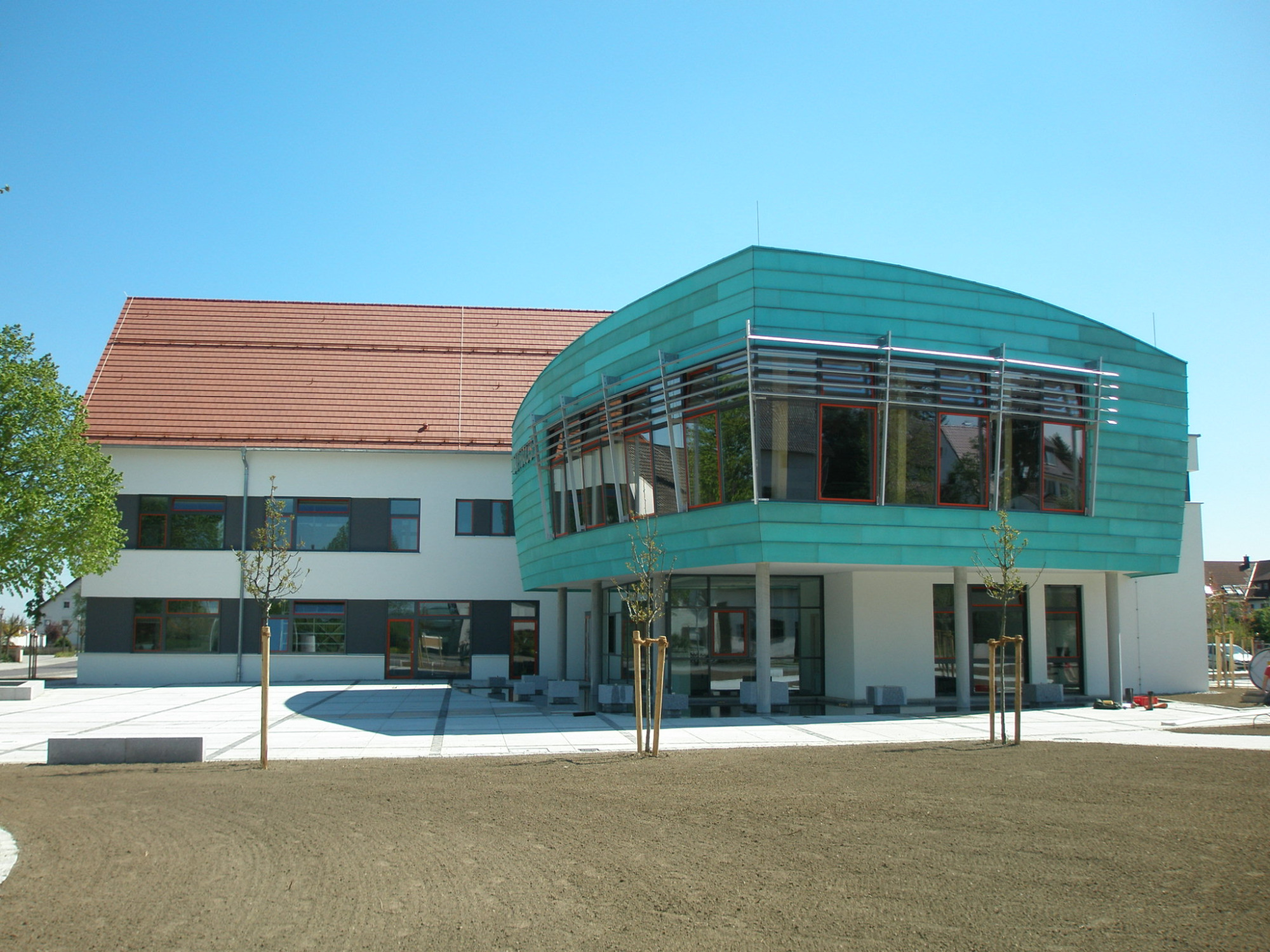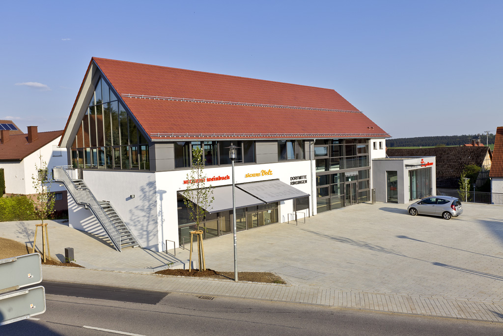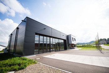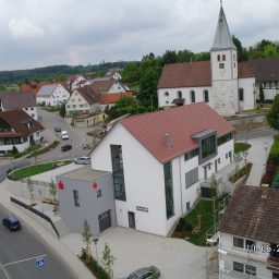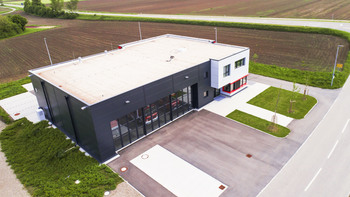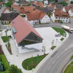Fassade eines modernen Gebäudes mit dem Schriftzug "Feuerwehr Bronnen".