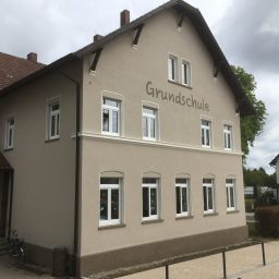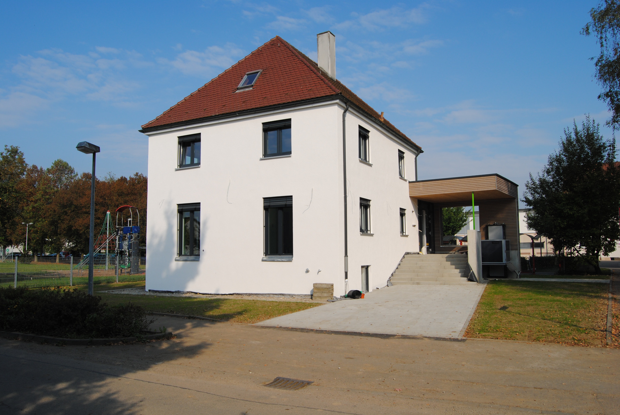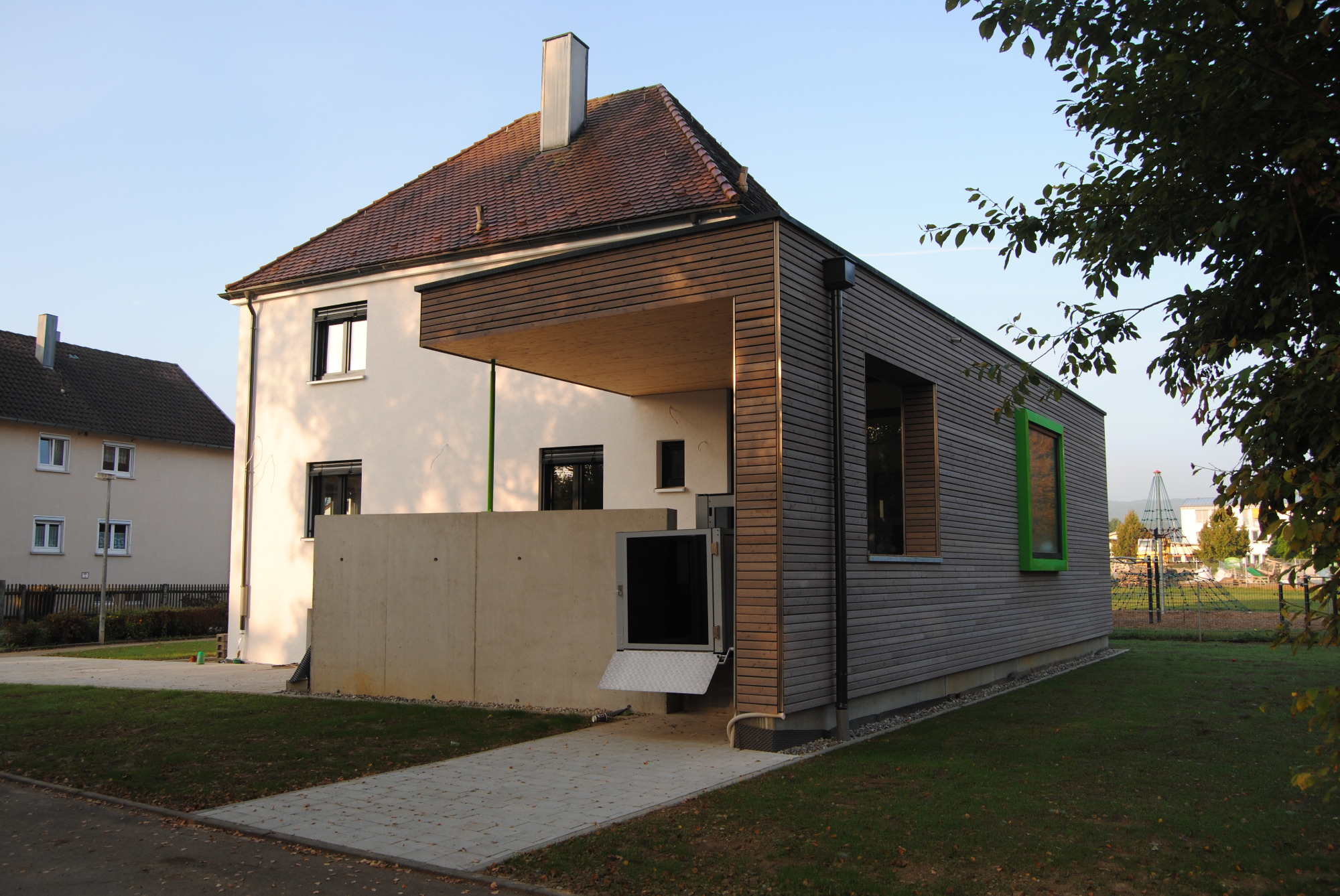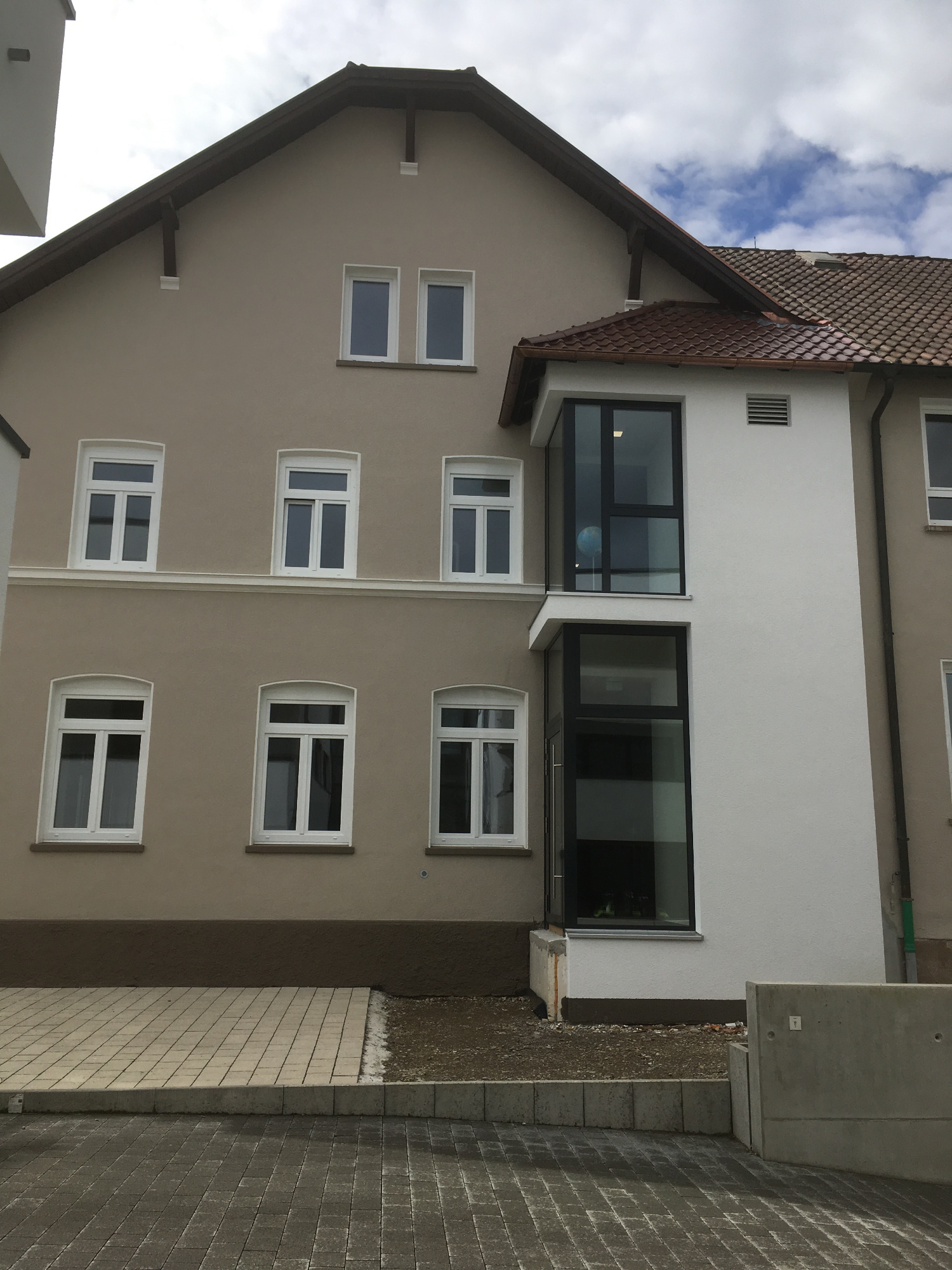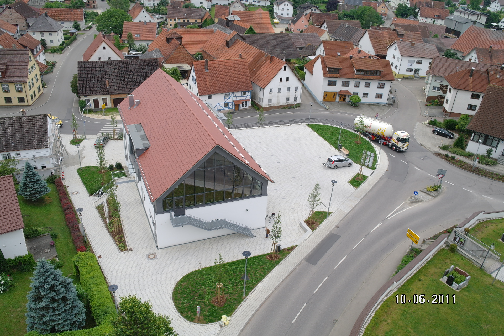 Fassade eines modernen Gebäudes mit dem Schriftzug "Feuerwehr Bronnen".
